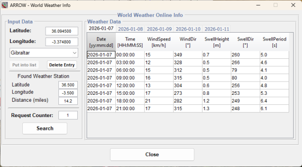 The ARROW program is a software tool to estimate and display the potential conditions and countermeasures to Avoid Rolling Resonances Or Wave impacts on ships due to specific wave encounter situations, specifically potential danger caused by synchronous or parametric resonance.