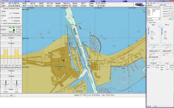 With the Design & Planning Tool the new fast time manoeuvring planning allows the trainees to design an individual manoeuvring / berth plan with real manoeuvres and control settings (in contrary to the conventional method by guessing or manual drawings on paper charts only …)