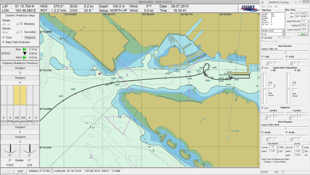 On an advanced level the trainees can make full use of the dynamic prediction and the prepared manoeuvring plan as underlying concept to achieve the best fit with the plan and the exercise result. The full use of the prediction is increasing safety & effectiveness even for advanced trainees.